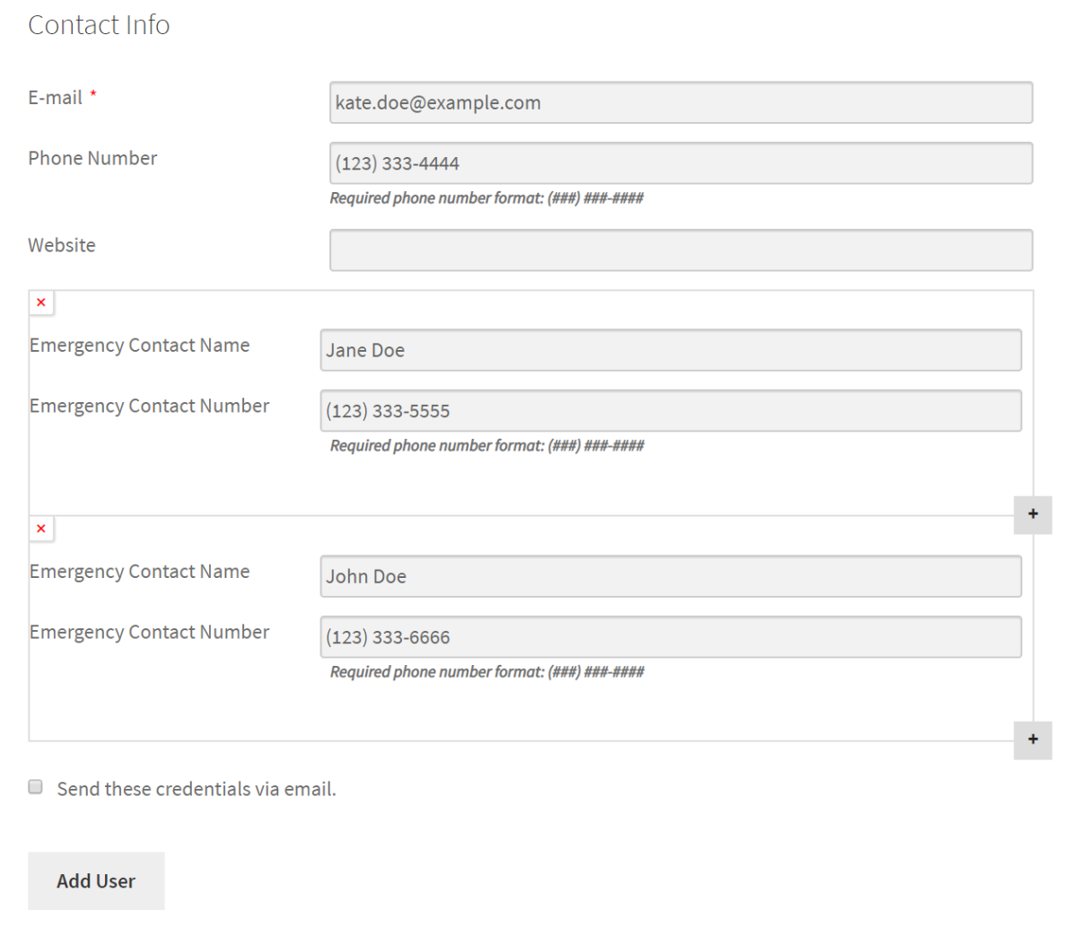 Profile Builder Pro’s Repeater Fields add-on allows you to add front-end repeater fields (or groups of fields) to your forms.