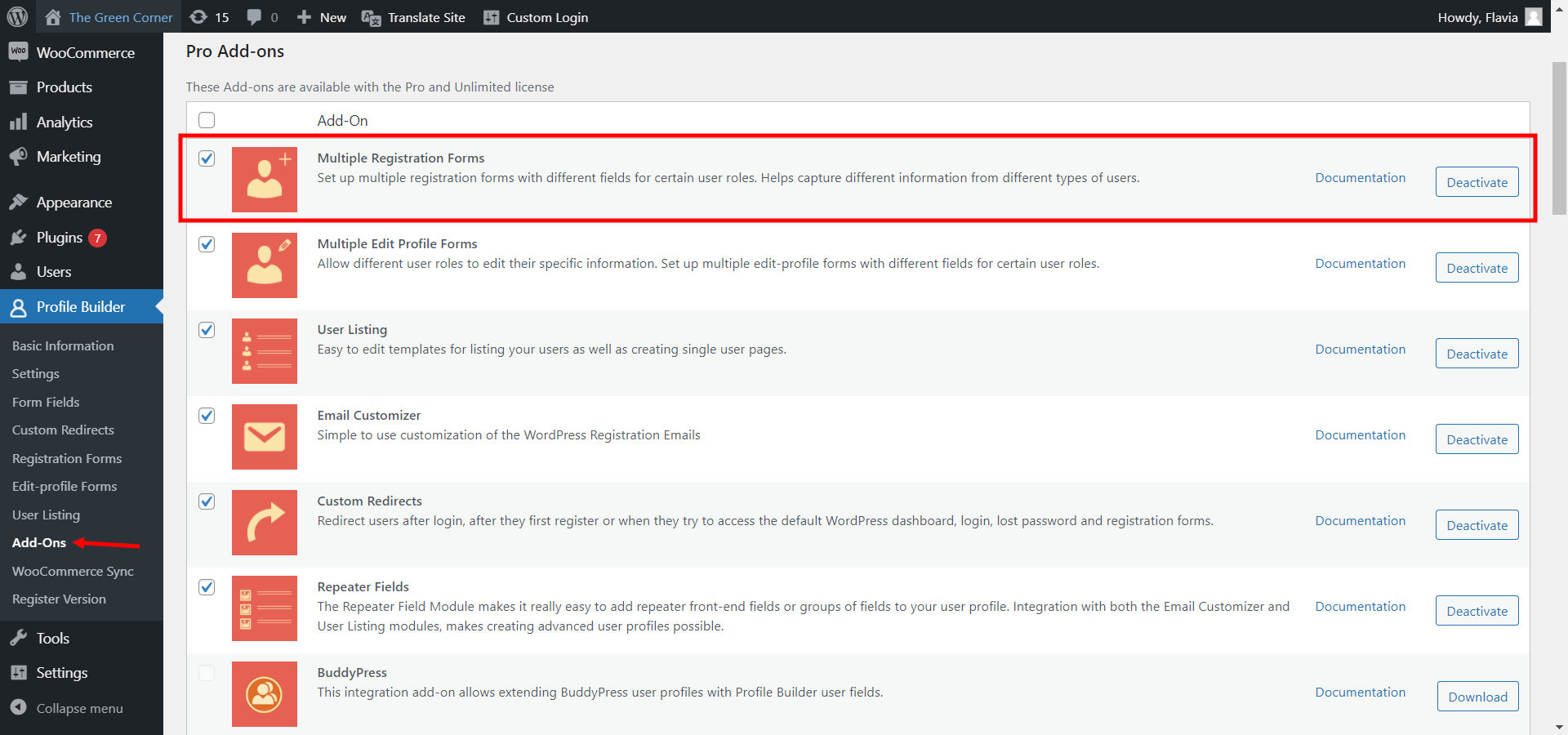 The first thing you need to do is enable the Multiple Registration Forms module by heading over to Profile Builder → Add-ons. After you’ve enabled the add-on, you’ll see a new Registration Forms tab in the Profile Builder menu. Click on it, then select the Add New button to create a new one.
