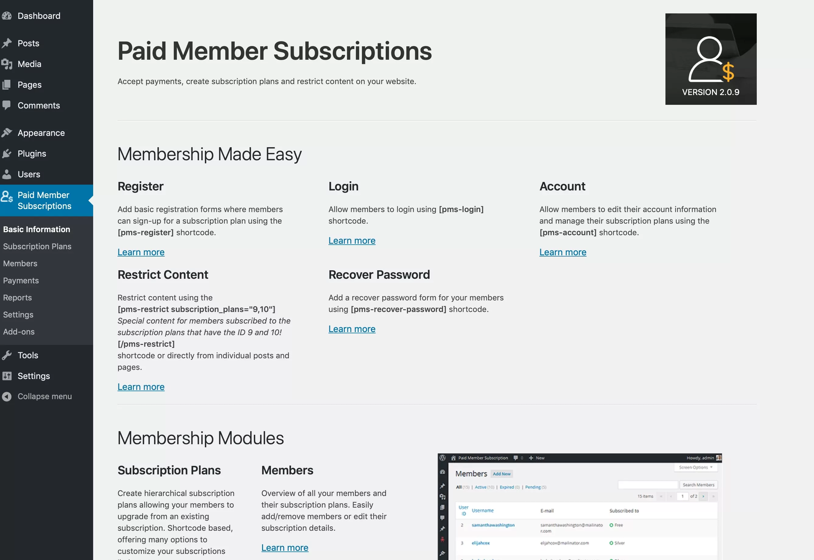 The Paid Member Subscriptions plugin includes all the features you need for a membership site software plugin that will grow with your business. And it also makes it incredibly easy to set up, while offering the flexibility and customization options that will help your site adapt over time.