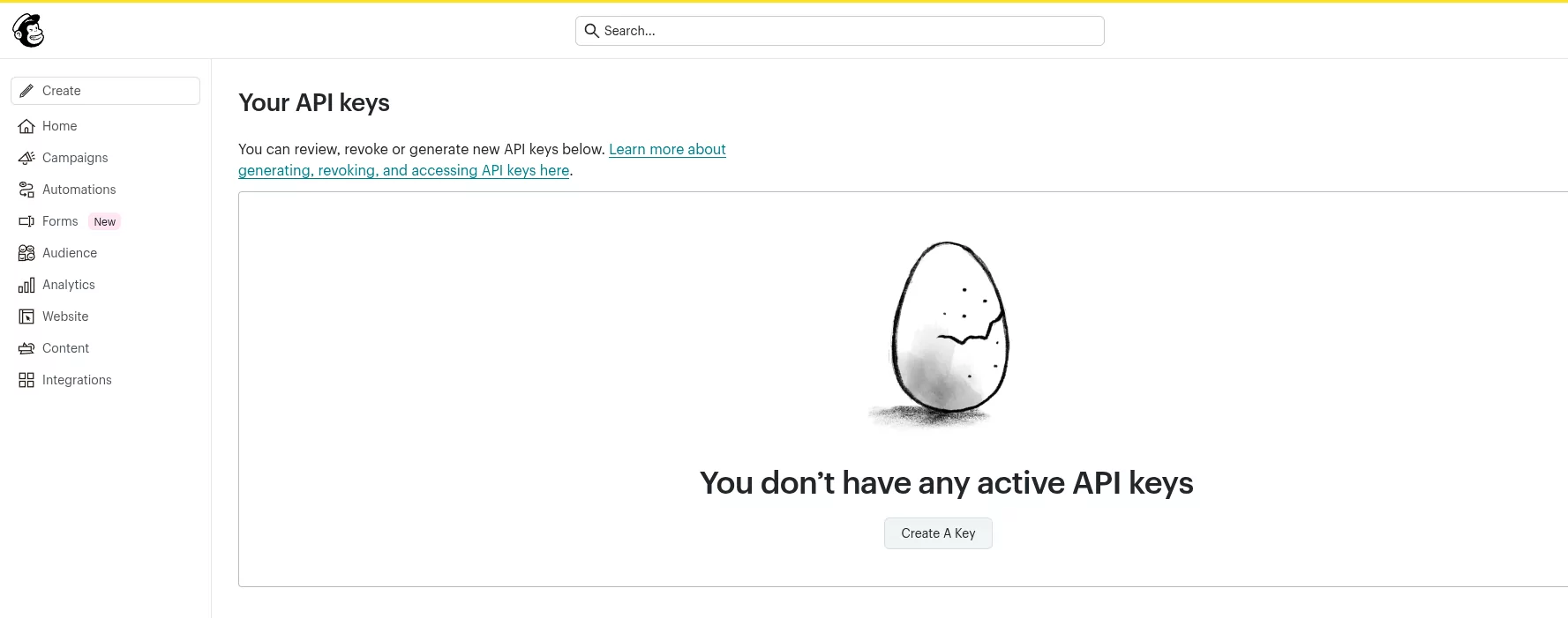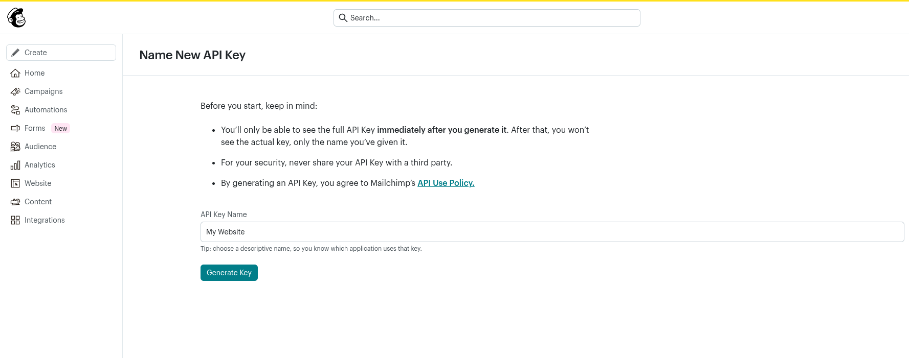 To generate your Mailchimp API key you will need to go to your Mailchimp Dashboard and under Profile → Extras → API Keys → scroll down to Your API Keys section