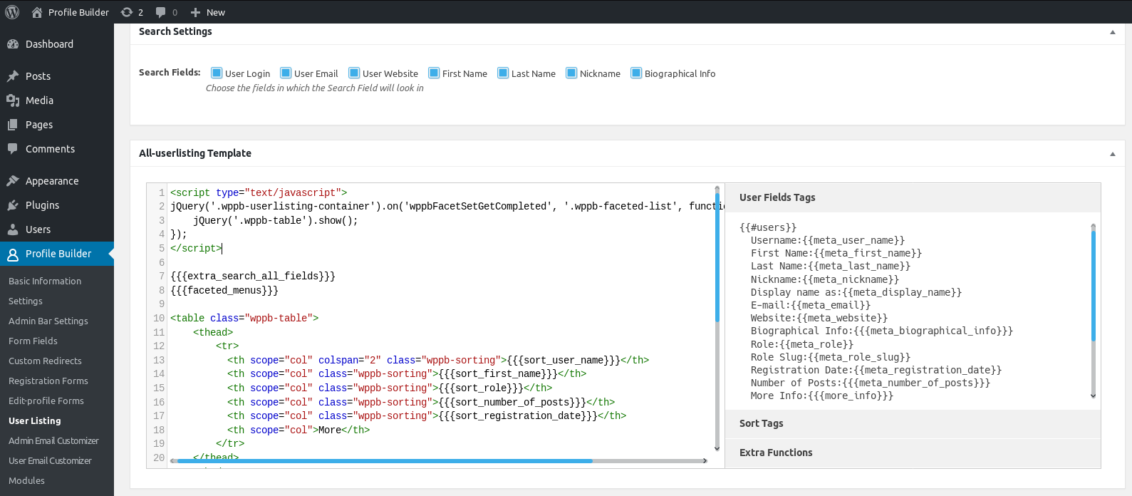The next step is to add some code that will hide the Userlisting table until a search is performed.
