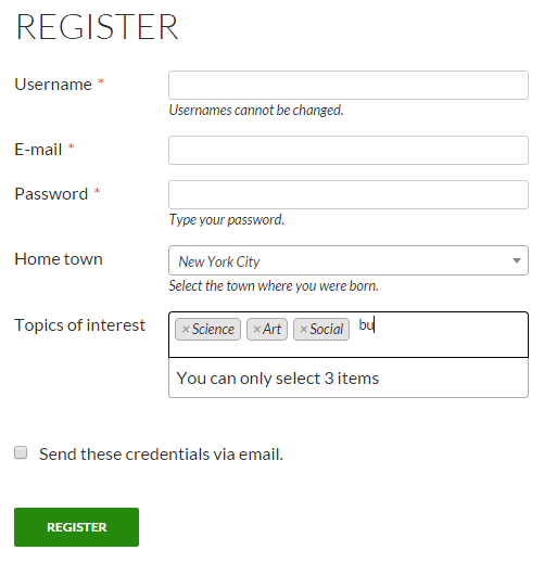 You can see the fields we just created, in action on this register form.