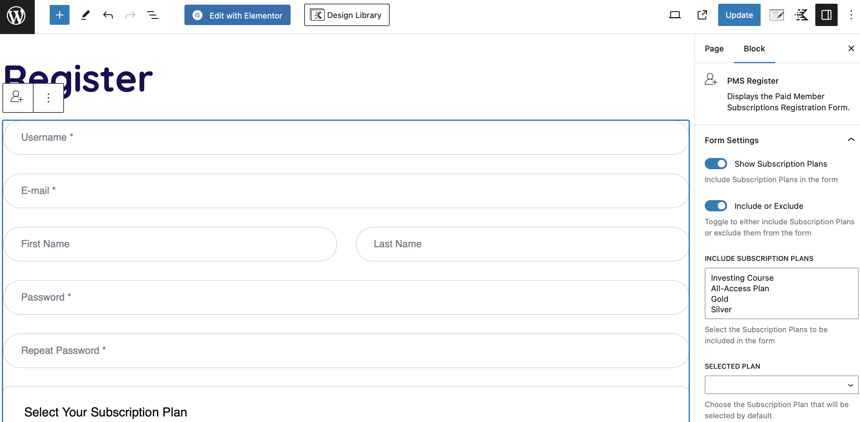 The Paid Member Subscriptions plugin may have already created a registration page for your platform as part of its setup wizard. However, even if this is the case, you might want to make some improvements, like the following: