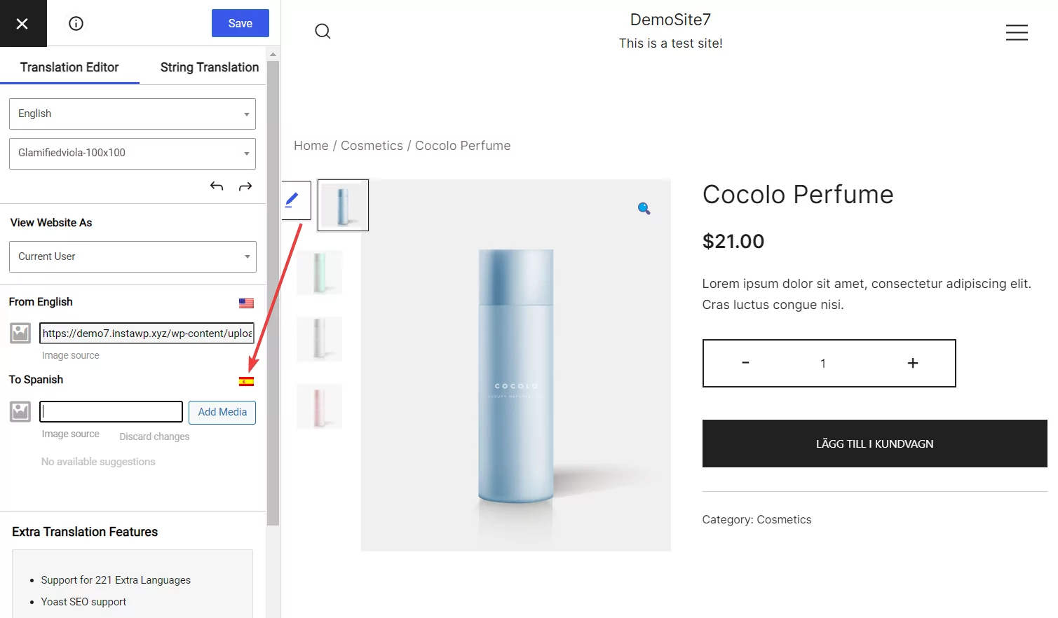 Extended language switcher includes a floater menu, shortcode and individual menu items you can add to any WordPress menu.